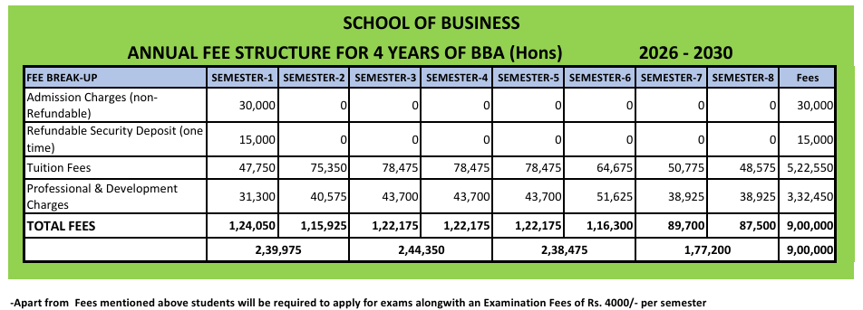 Earlier, BBA {Hons.} Human Resource Management fees at Sushant University was ₹ 8.91 Lakhs (in 2025) for the entire course duration. This shows a fee increase of ₹ 41,500 over the year.