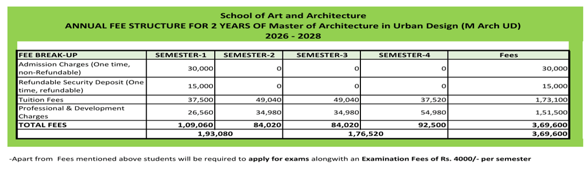 Sushant University M.Arch Urban Design fees 2026 is ₹ 3.86 Lakhs for the entire course duration.