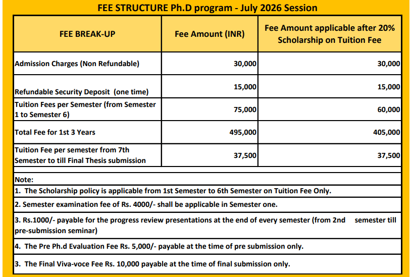 Earlier, Ph.D Hospitality fees at Sushant University was ₹ 5.15 Lakhs (in 2025) for the entire course duration. This shows that the fee has remained unchanged since 2025.