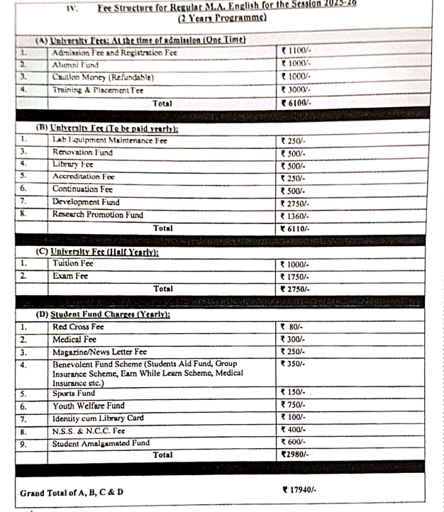 24 Jun, 2025 DCRUST Fee structure 2025-26 has been released for MA English program. The total academic fee is ₹ 35,280 .