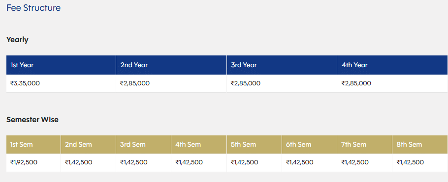 - Candidates need to pay ₹ 3.35 Lakhs in the first year.