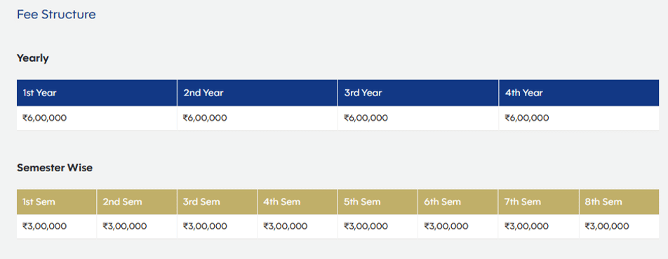 - Candidates need to pay ₹ 6 Lakhs in the first year.
