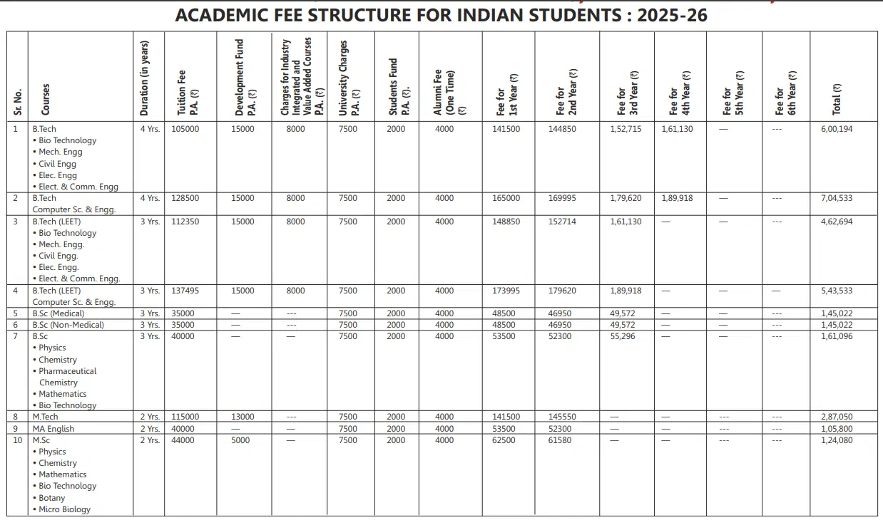 Earlier, B.Sc {Hons.} Chemistry fees at MM University Ambala was ₹ 1.61 Lakhs (in 2024) for the entire course duration. This shows that the fee has remained unchanged since 2024.