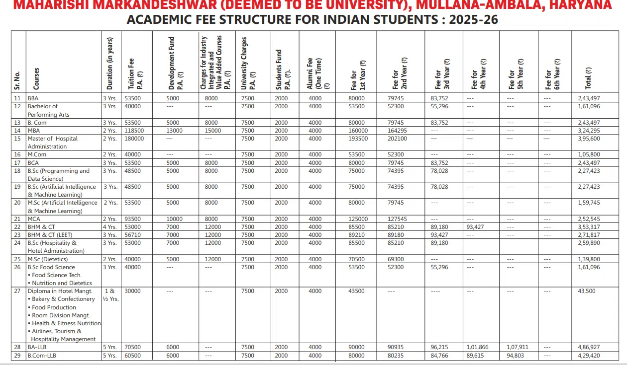 - MM University Ambala Hostel Fee is ₹ 2.35 Lakhs.