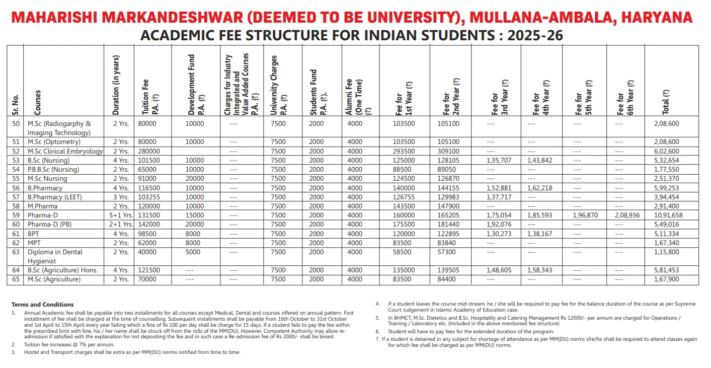 - MM University Ambala Hostel Fee is ₹ 2.35 Lakhs.