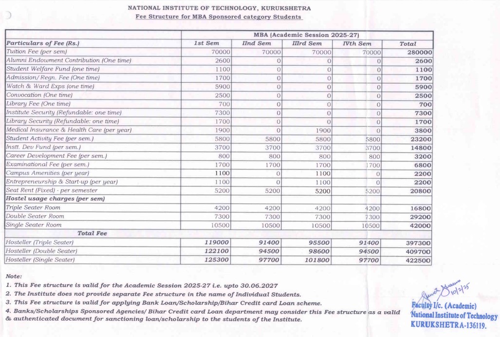 - NIT Kurukshetra Hostel Fee is ₹ 4,200.