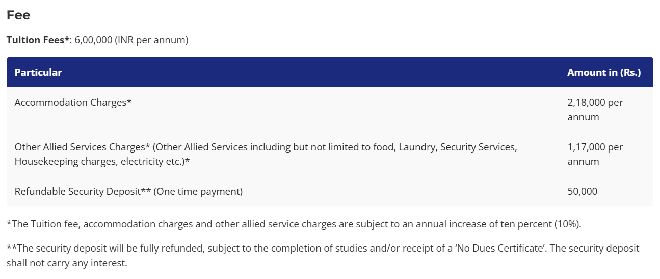 The college, being private, has higher tuition fees, costing 3-4 lakh INR per semester for non-law courses, equating to 7-8 lakh INR annually, while law courses are more expensive. Additional costs include mandatory hostel fees. Despite the high expenses, the college provides various scholarships for academically excellent students and other categories, with detailed information available on their website.