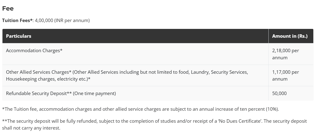 | Fee Type | Total Amount (INR) |