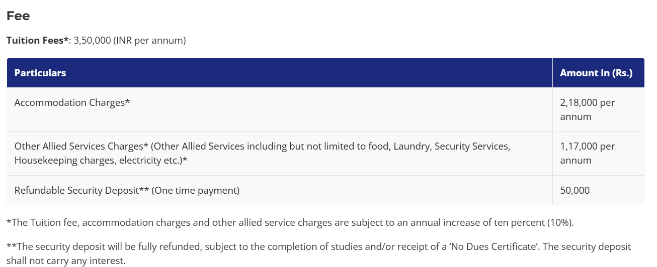 | Fee Type | Total Amount (INR) |