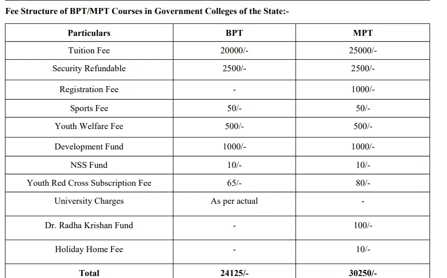 UHSR B.P.T fees in first year is ₹ 24,125. The detailed fees is mentioned below.UHSR offers a total of 68 seats for B.P.T . Check UHSR Admission 2025