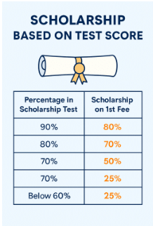 | Percentage in Scholarship Test | Scholarship on 1st Fee |