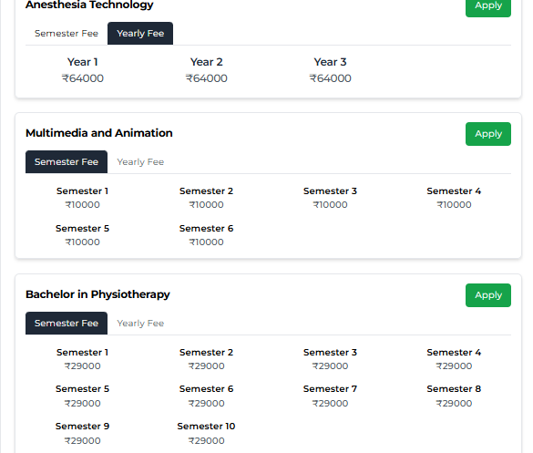 | Fees | Year 1 (in INR) | Year 2 (in INR) | Year 3 (in INR) |