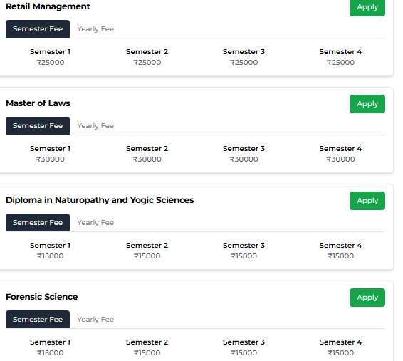 Arni University Kangra Diploma Naturopathy & Yogic Sciences is offered as 2 Years Full Time program. The minimum eligibility criteria for Diploma is 10+2. The total fees for Arni University Kangra Diploma Naturopathy & Yogic Sciences in 2025 is ₹ 60,000 for the complete course duration, which includes total tuition fees of ₹ 60,000. Earlier, the fees in 2024 - 2025 for Diploma Naturopathy & Yogic Sciences was ₹ 88,000.
