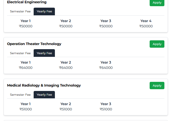 | Fees (2025 - 2026) | Year 1 (in INR) | Year 2 (in INR) | Year 3 (in INR) |