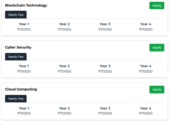 | Fees (2025 - 2026) | Year 1 (in INR) | Year 2 (in INR) | Year 3 (in INR) | Year 4 (in INR) |