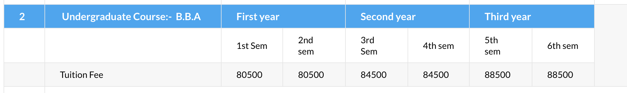 Earlier, BBA fees at JUIT Solan was ₹ 4.73 Lakhs (in 2024) for the entire course duration. This shows a fee increase of ₹ 69,100 over the year.