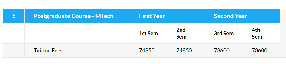 - Candidates need to pay ₹ 1.85 Lakhs in the first year.
