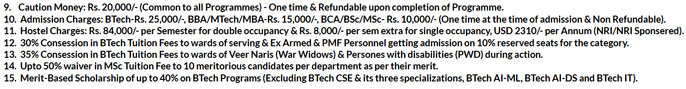 - This includes a total tuition fee of ₹ 2.8 Lakhs, Caution Fees of ₹ 20,000.
