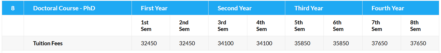 Earlier, Ph.D Computer Science And Engineering fees at JUIT Solan was ₹ 2.9 Lakhs (in 2025) for the entire course duration. This shows a fee increase of ₹ 9,800 over the year.