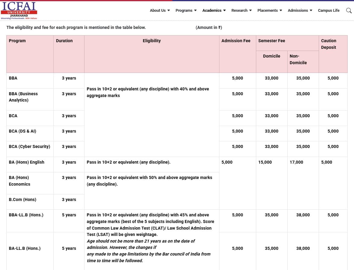 | Last Date for Payement of Admission Fees [BA LLB] | Aug 04, 2025 |