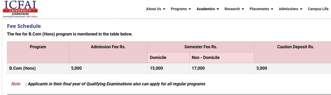 | Fee Type | Total Amount (INR) |