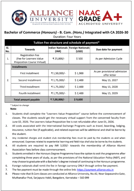04 Feb, 2026 Alliance University Bangalore UG/PG/PhD Admission 2026 is open. Apply Now!