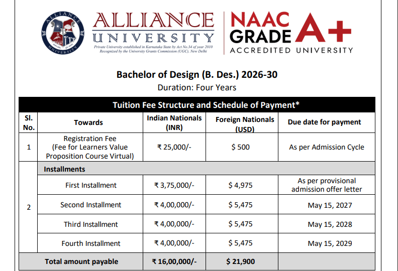 All students are required to pay INR 3,000/- towards the membership of the Alliance Alumni Association fees before class commencement.