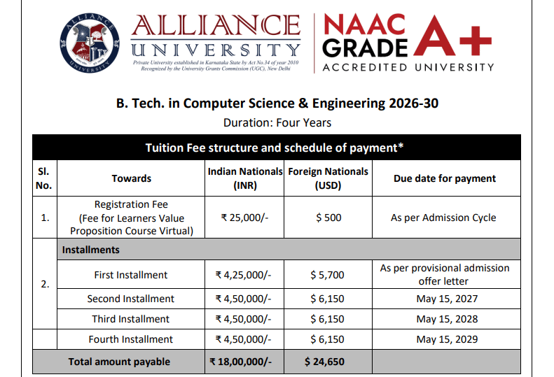 Alliance University offers a comprehensive admission process involving an entrance exam and a personal interview. The faculty, many of whom hold PhDs from prestigious institutions, maintain a 1:60 faculty-to-student ratio, providing personalized attention. Educational support is robust with an active Career Advancement and Networking (CAN) office aiding in placements and internships. The university reports a 93% placement rate, with top recruiters like TCS, Amazon, and Axis Bank offering roles. The highest package recorded is INR 60.10 LPA, and the average is INR 8.50 LPA.