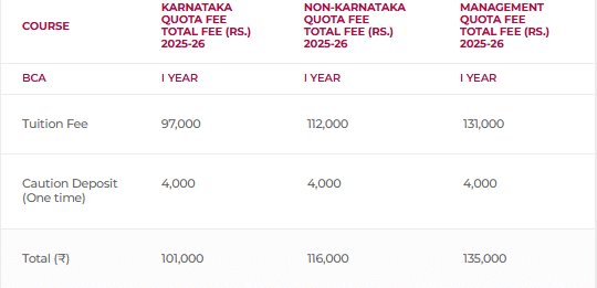 Earlier, BCA fees at Amrita Vishwa Vidyapeetham Mysore Campus was ₹ 3.56 Lakhs (in 2025) for the entire course duration. This shows that the fee has remained unchanged since 2025.