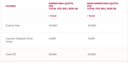 - This includes a total tuition fee of ₹ 1.41 Lakhs, Caution Fees of ₹ 4,000, Other Fees of ₹ 3,500.