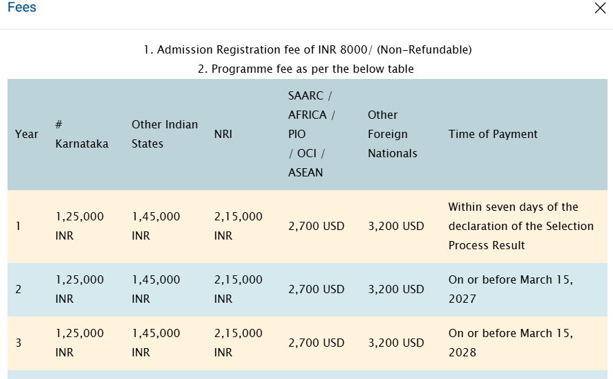 - Candidates need to pay ₹ 1.53 Lakhs in the first year.