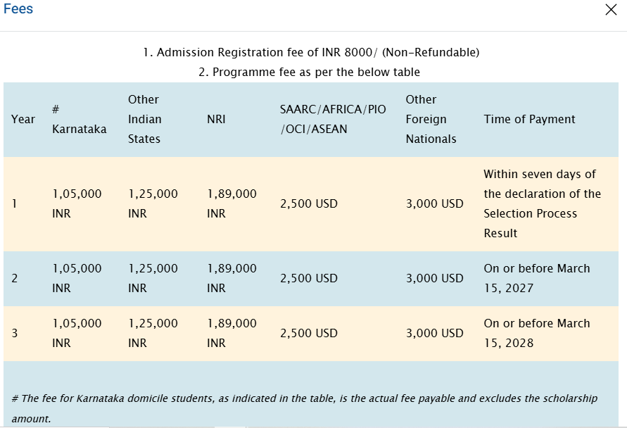- Candidates need to pay ₹ 1.33 Lakhs in the first year.
