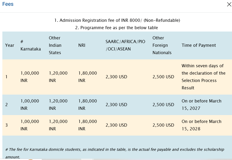 - Candidates need to pay ₹ 1.28 Lakhs in the first year.