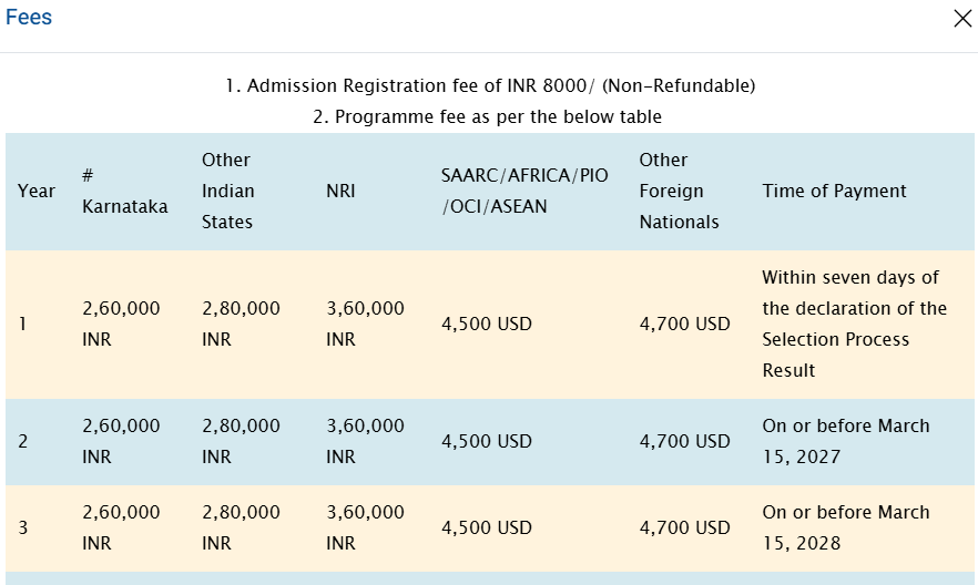 - Candidates need to pay ₹ 2.88 Lakhs in the first year.