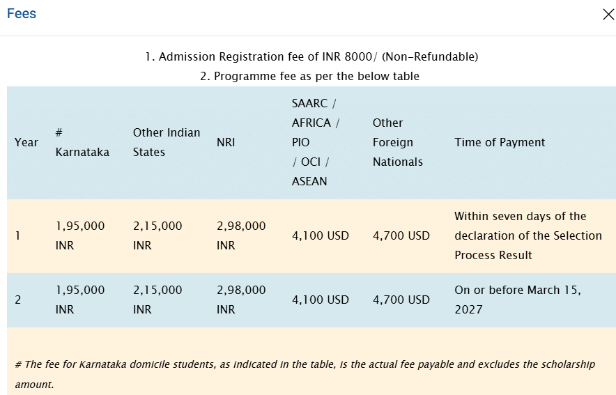 - Candidates need to pay ₹ 2.23 Lakhs in the first year.