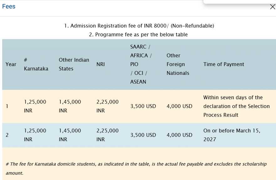 - Candidates need to pay ₹ 1.53 Lakhs in the first year.