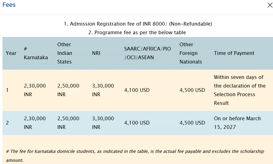 - Candidates need to pay ₹ 2.58 Lakhs in the first year.