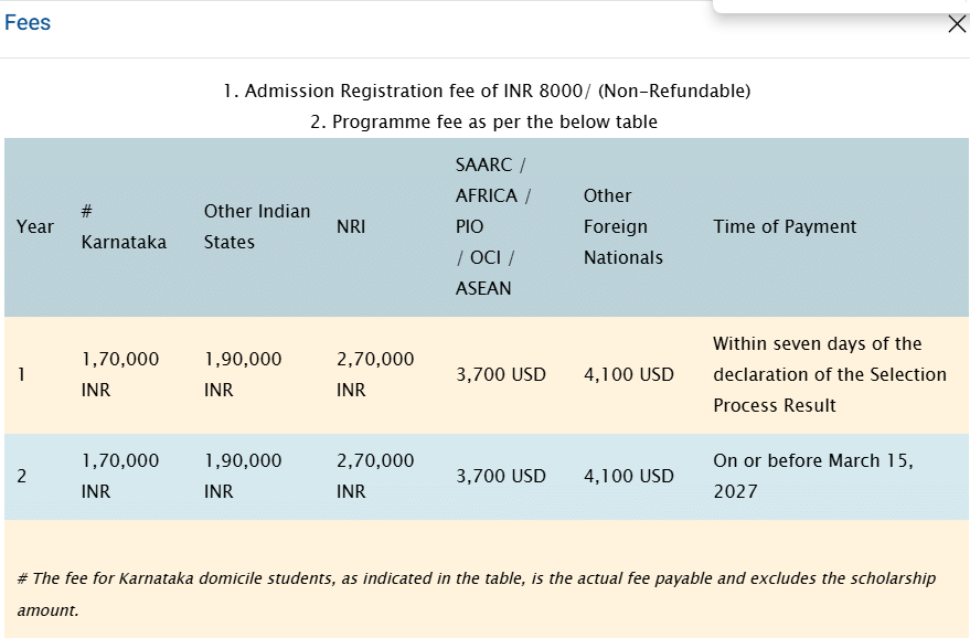 - Candidates need to pay ₹ 1.98 Lakhs in the first year.