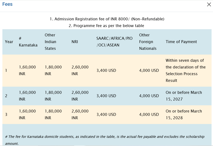 - Candidates need to pay ₹ 1.88 Lakhs in the first year.