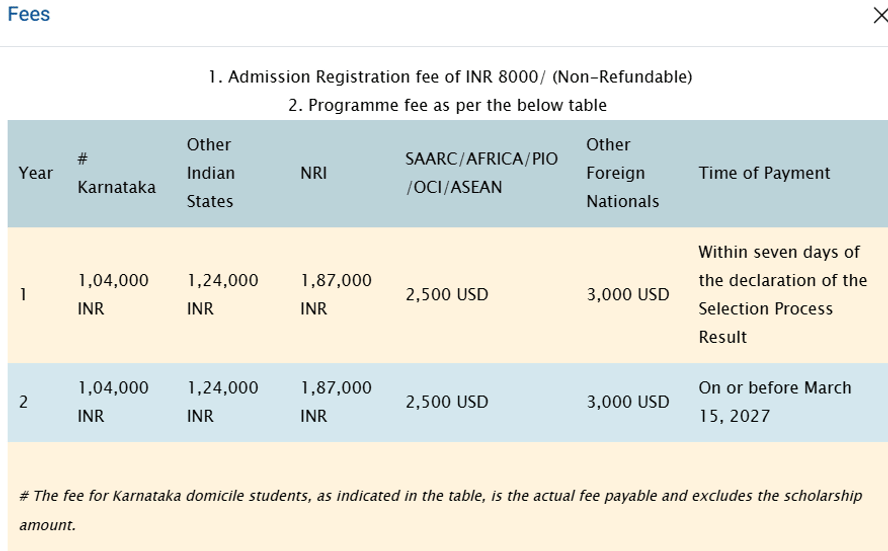 | Christ University Bangalore | ₹ 2.56 Lakhs |