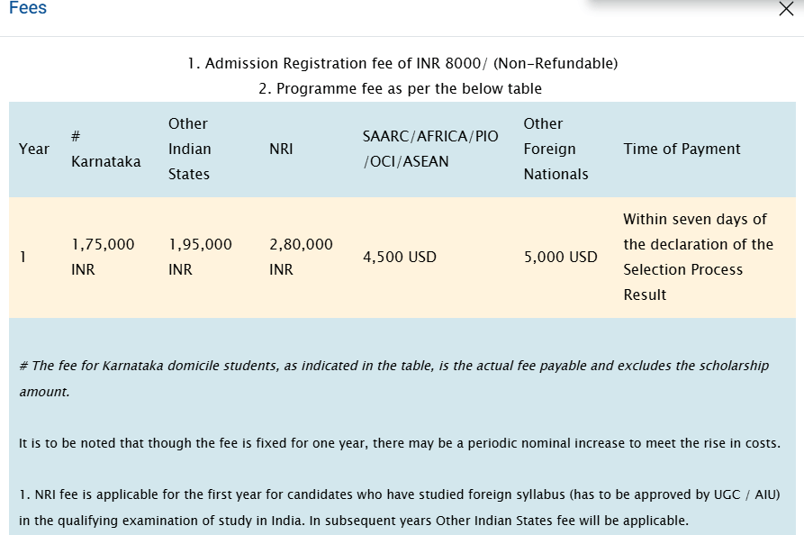 | Christ University Bangalore | ₹ 2.03 Lakhs |
