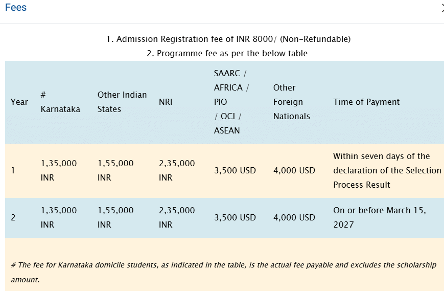 - Candidates need to pay ₹ 1.63 Lakhs in the first year.