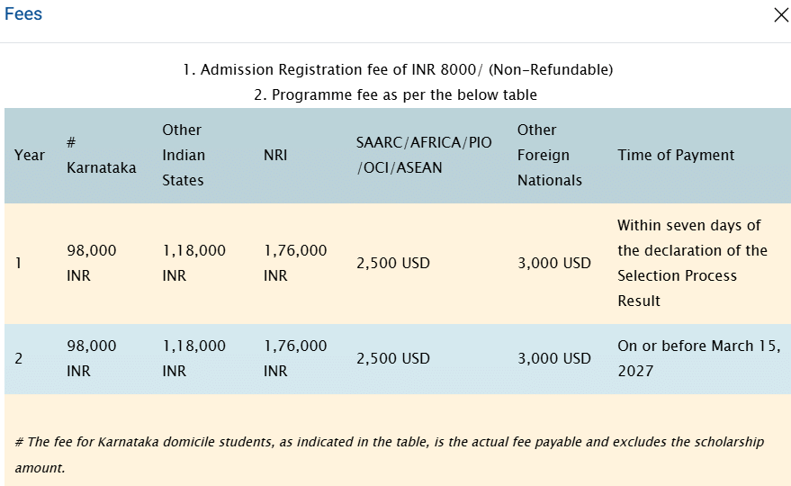 - Candidates need to pay ₹ 1.26 Lakhs in the first year.