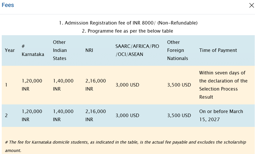 - Candidates need to pay ₹ 1.49 Lakhs in the first year.