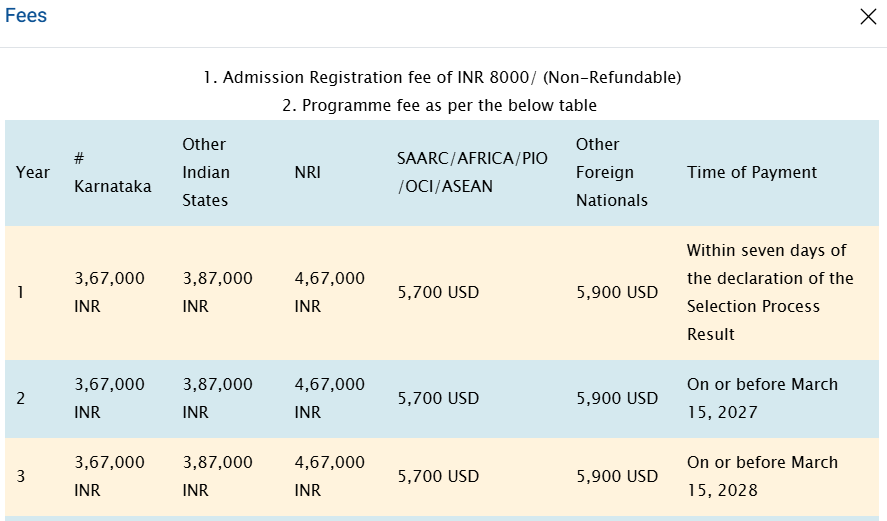 - Candidates need to pay ₹ 3.95 Lakhs in the first year.