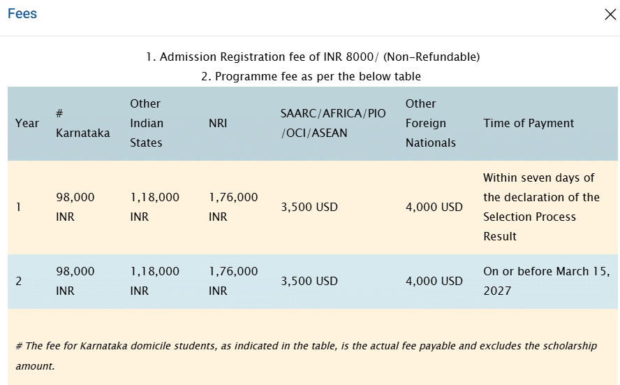 - Candidates need to pay ₹ 1.26 Lakhs in the first year.