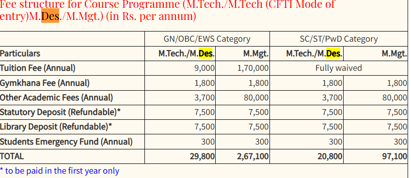 Fee TypeTotal Amount (INR)