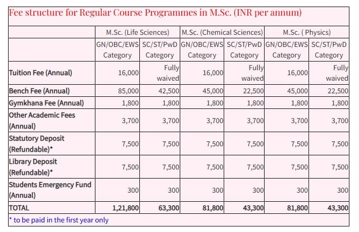 IISc Bangalore M.Sc Chemical Sciences Previous Fees