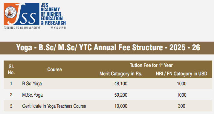 JSS Academy of Higher Education & Research Mysore offers a total of 30 seats for Certification Yoga Teachers Training. Check JSS Academy of Higher Education & Research Mysore Admission 2025