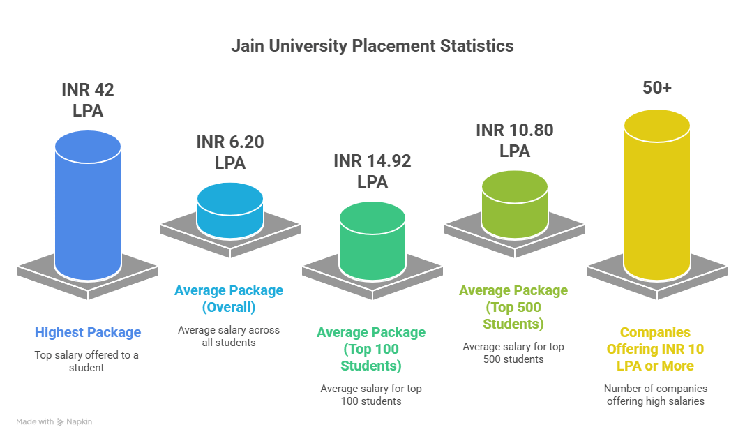 For 2025, Jain University Placements are currently in progress. While Jain University highest package stood at INR 42 LPA, Jain University average package stood at INR 6.2 LPA. Some of the leading recruiters here include PWC, Amazon, and DeShaw among others.